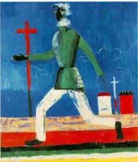 «Cuando los bolcheviques quebraron la columna vertebral del campesinado, él empezó a pintarlos como muñecos deformes sobre un fondo amarillo y azul (como la bandera ucraniana).»