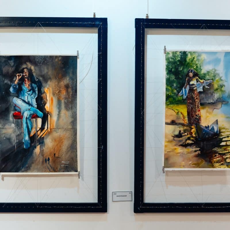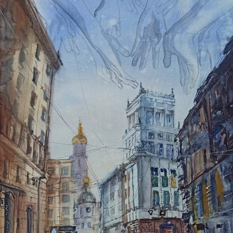 Cada material que uso tiene su propio lenguaje. Las acuarelas son sensibilidad, transparencia, una línea divisoria entre la consciencia y la materia. El óleo crea capas de sentidos, etc. Elijo los materiales acordes a la idea central de lo que quiero transmitir.